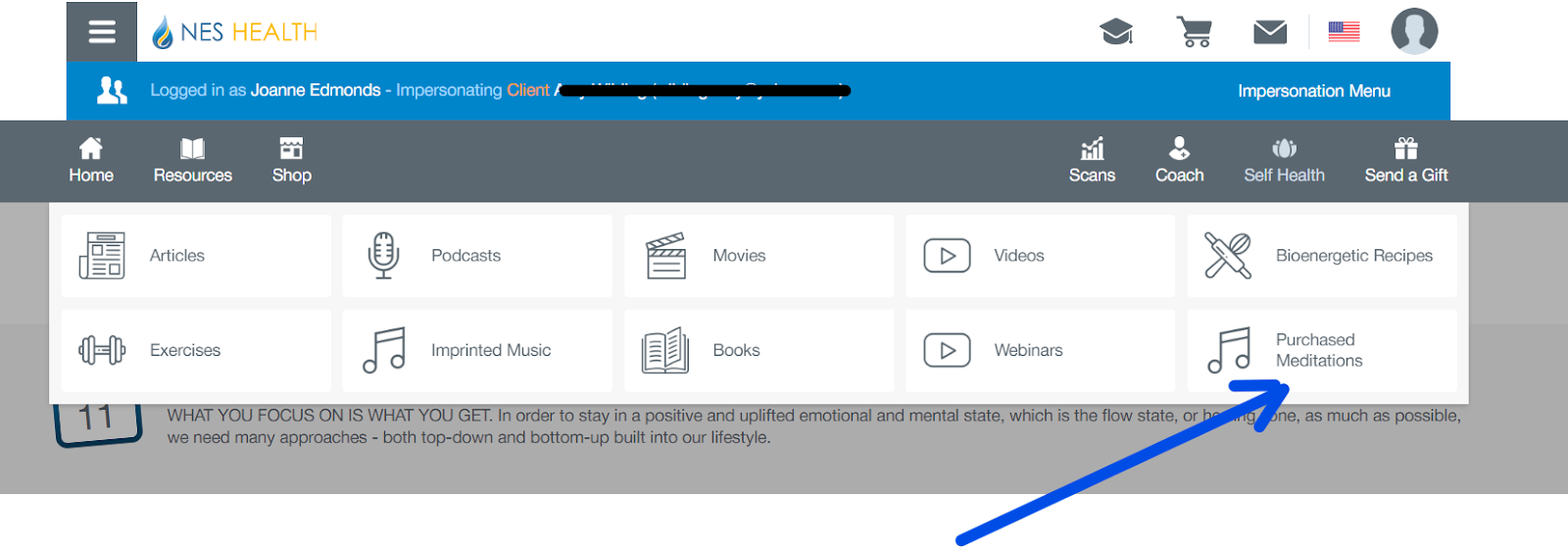 This week we are moving away from the Quick Start Lessons and into other resourceful areas of your portal, Self Health. This section of your portal is often overlooked, but it contains useful information such as a free e-book, imprinted music, recipes, and more. In this lesson, we will also discuss Meditations and how to purchase, unlock, and listen to personalized meditations.