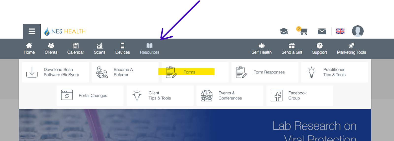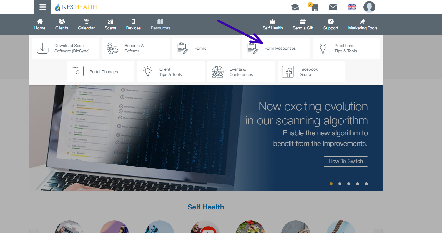 To check on your client responses, you will click on the Resources button, and Form Responses.