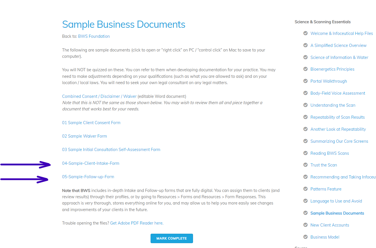 If you do not want to use the electronic version of the forms, you can find a downloadable PDF version in your BWS Foundations.