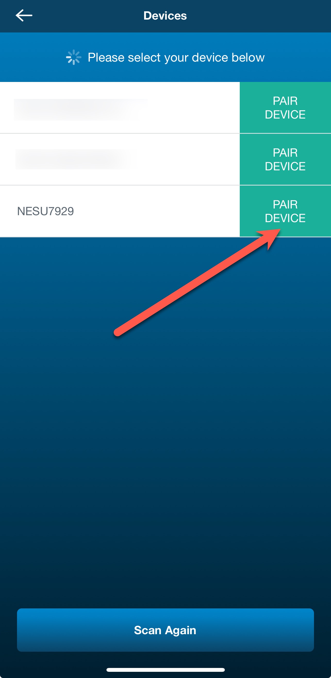 Press Pair Device next to the one that matches the code that is on the back of your hand scanner, in this example: NESU7929